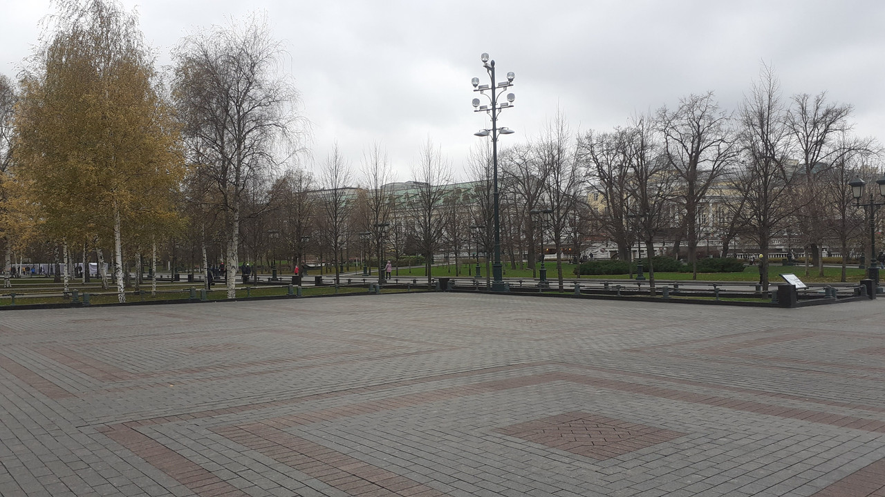 La reja de hierro forjado, que encierra esta parte del Jardín de Alejandro, tiene un diseño de fasces, destinados a conmemorar la victoria militar sobre Napoleón. La parte norte del jardín está adyacente al gran complejo comercial subterráneo en Manege Square.